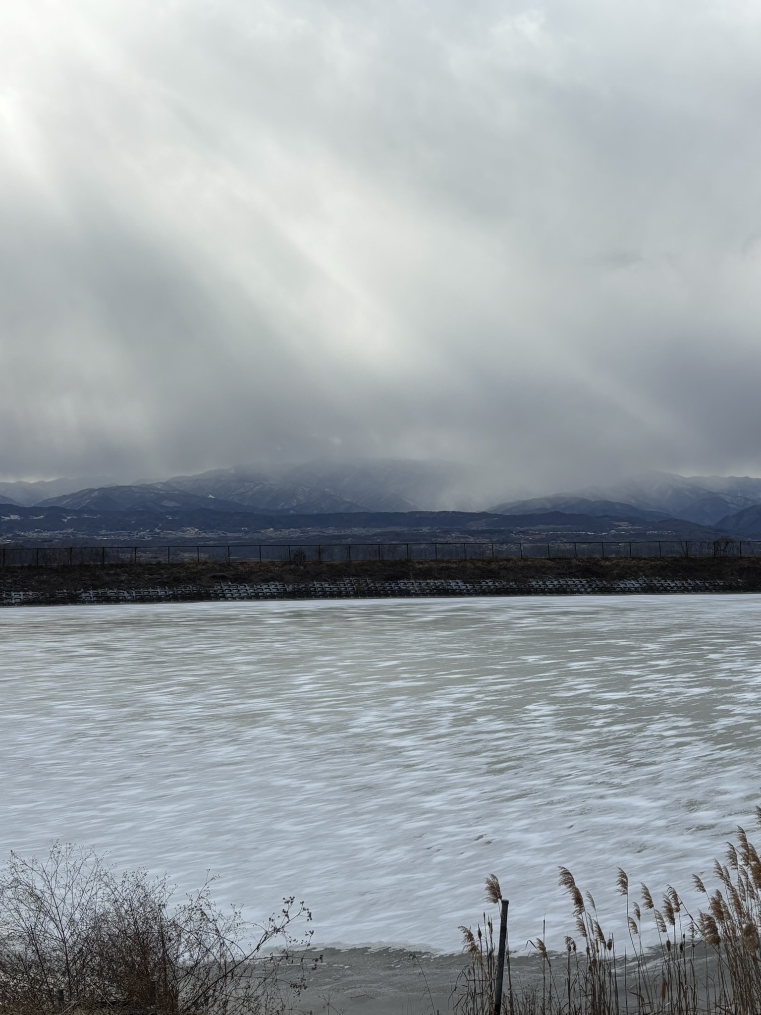畑の近くの農業用ため池・天池も、ひさしぶりに全面凍結。給湯器まで凍ってしまって、参りました。