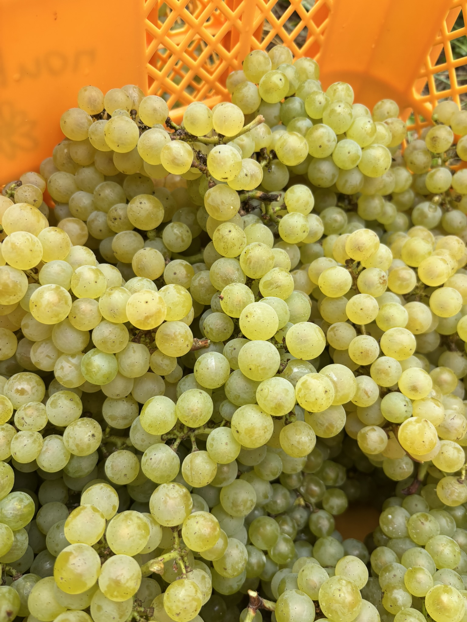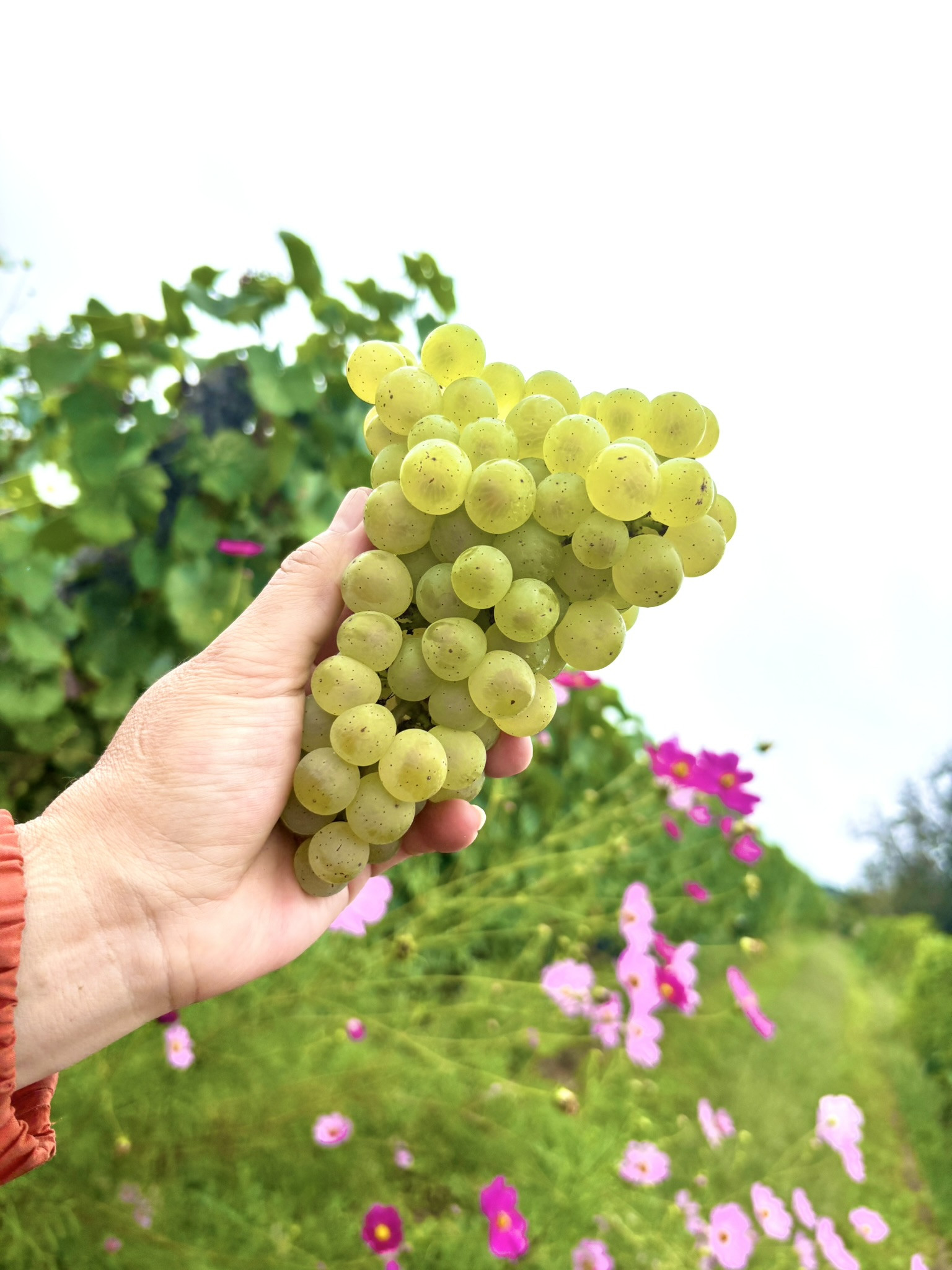 お天気に恵まれた2025年は、8年間ブドウ栽培に関わった中で、いちばん美しいシャルドネが採れました。