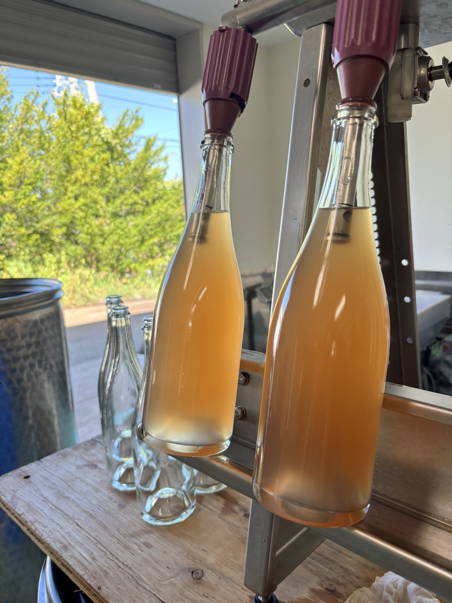 3週間後、無濾過、無清澄、亜硫酸を加えずに瓶詰。メトード・アンセストラル(田舎方式)による微発泡ワイン(ペティアン)です。