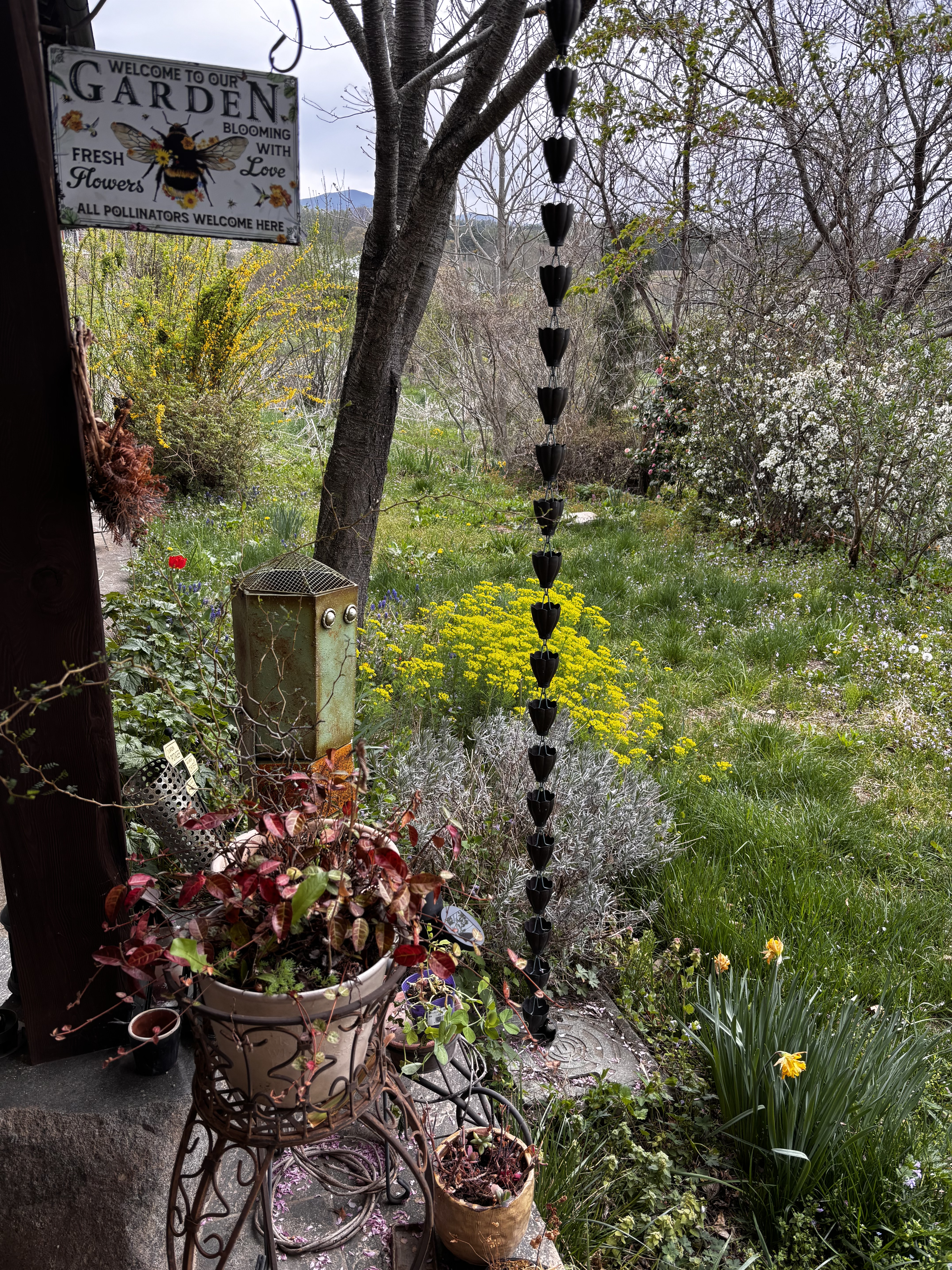 長い冬が過ぎて、春が訪れ始めたお庭です。
