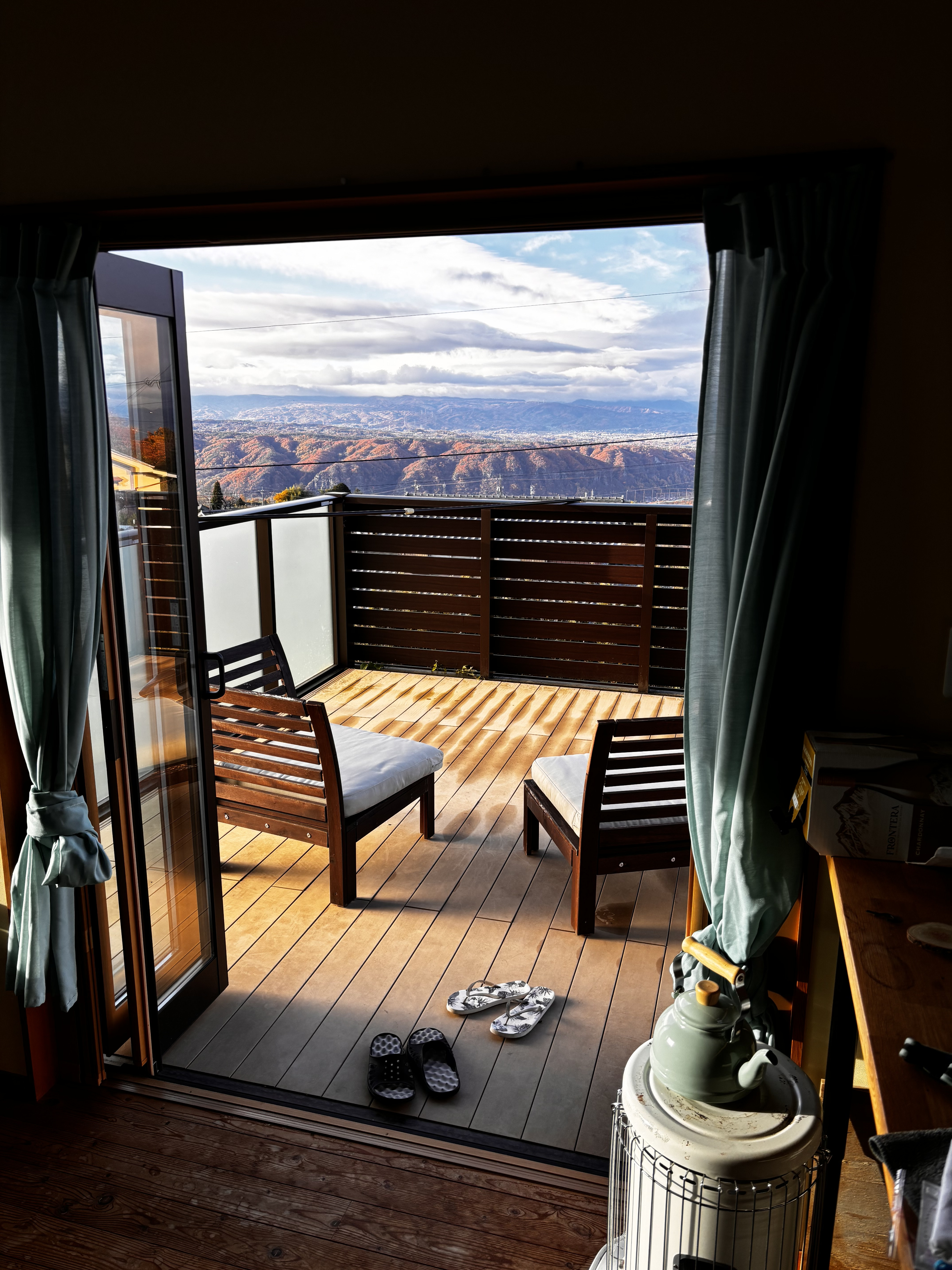 テラスからは千曲川対岸の御牧が原が見渡せます。