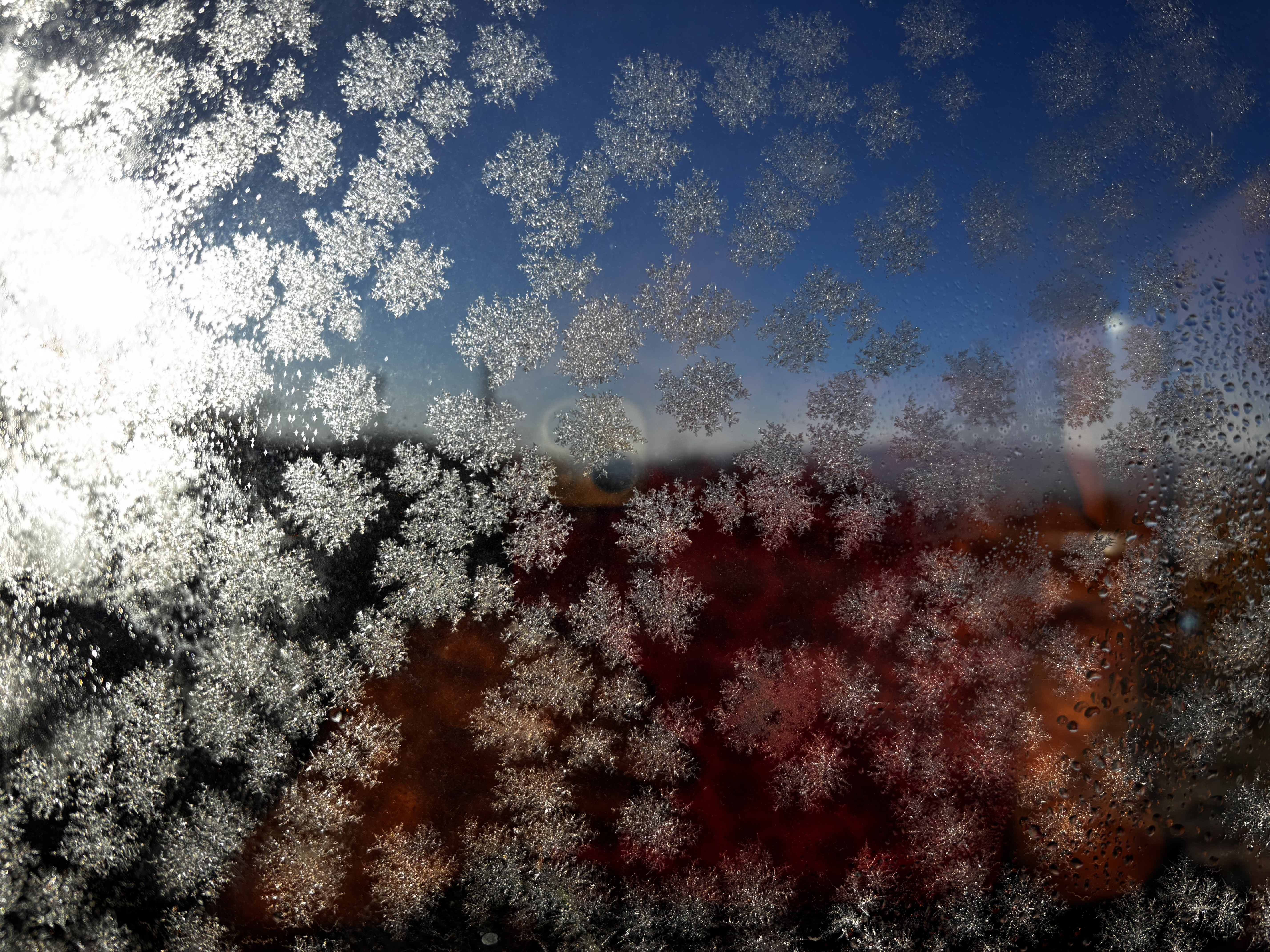 早朝の外が零下になり始めると、窓にはまるで昭和のレトロな模様ガラスのような霜がつきます。