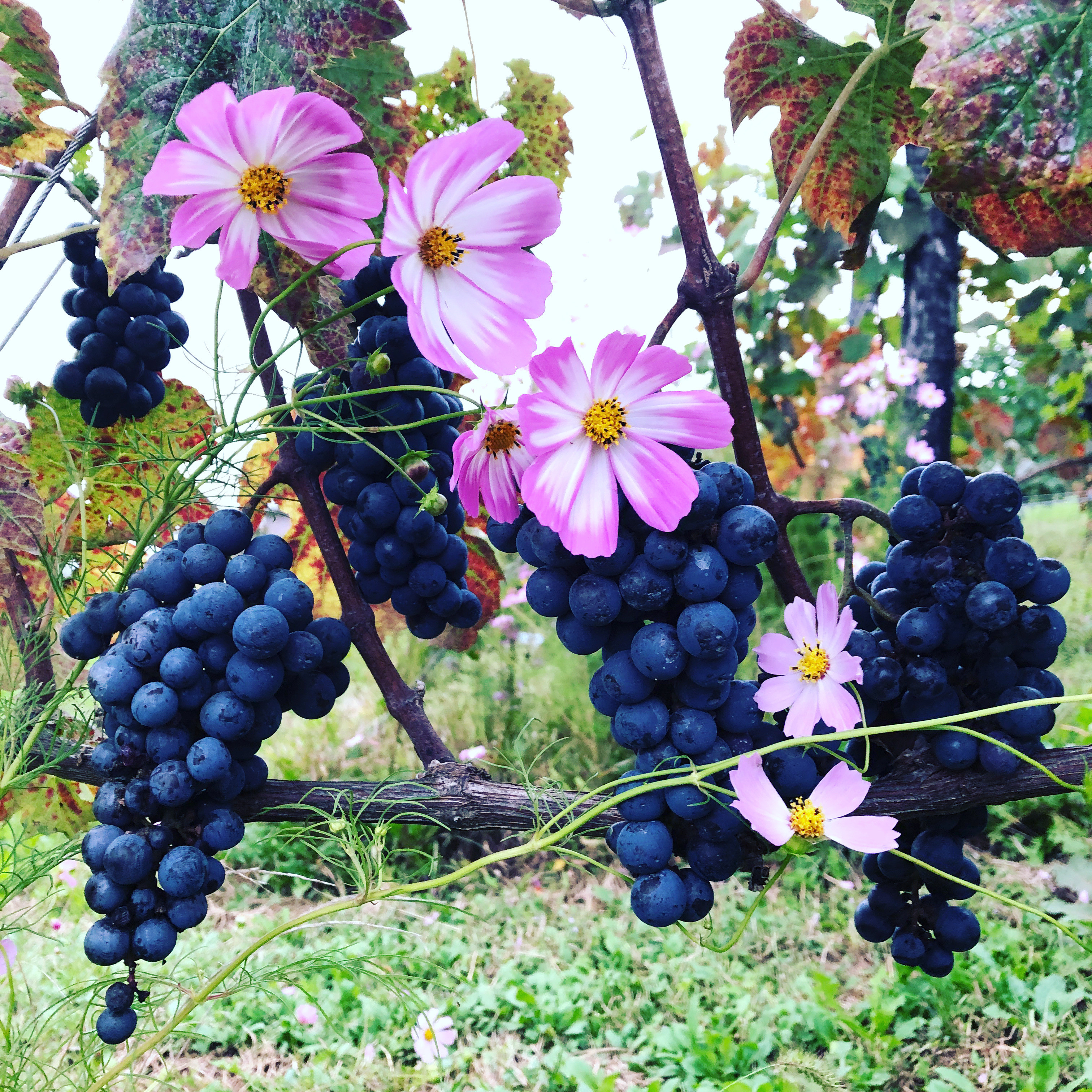 コスモスと実った黒ブドウの共演、一番美しい季節です。